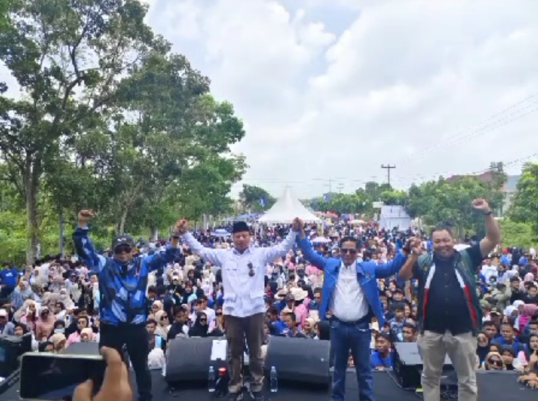ribuan Massa ini menghadiri deklarasi pasangan calon Suhardiman Amby – Mukhlisin untuk maju di Pilkada 2024 nanti.
