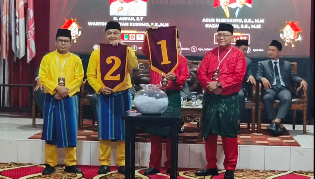 Pencabutan nomor urut, Pemilihan Kepala Daerah (Pilkada) Bupati Tebo, sukses dilakukan oleh Komisi Pemilihan Umum (KPU) Tebo, berlokasi di Aula KPU Tebo, Senin (23/09/2024).