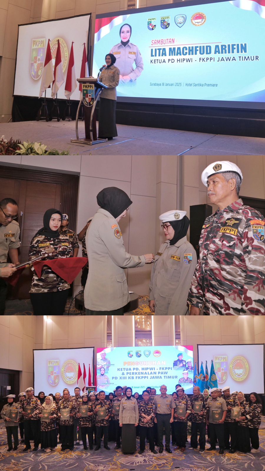 Ketua PD HIPWI FKPPI Jawa Timur, Lita Machfud Arifin menyampaikan dalam sambutannya ucapan terimakasih atas amanah yang diberikan semoga tugas ini adalah menjadi kadang amal bagi kita semua untuk menuju Indonesia Emas,” ungkapnya.