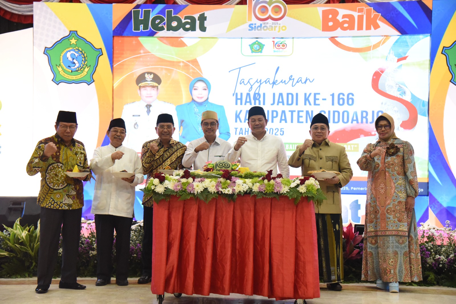 “Saya mengucapkan terimakasih banyak atas rawuh bapak ibu semua, atas rawuh poro kyai semua, atas rawuh para undangan semua. Alhamdulillah, semoga di hari jadi yang ke 166 Kabupaten Sidoarjo ini kegiatan-kegiatan pelaksanaan pembangunan di Kabupaten Sidoarjo bisa berjalan lebih baik lagi, lebih lancar lagi berkat doa bapak ibu semua,”ucapnya.