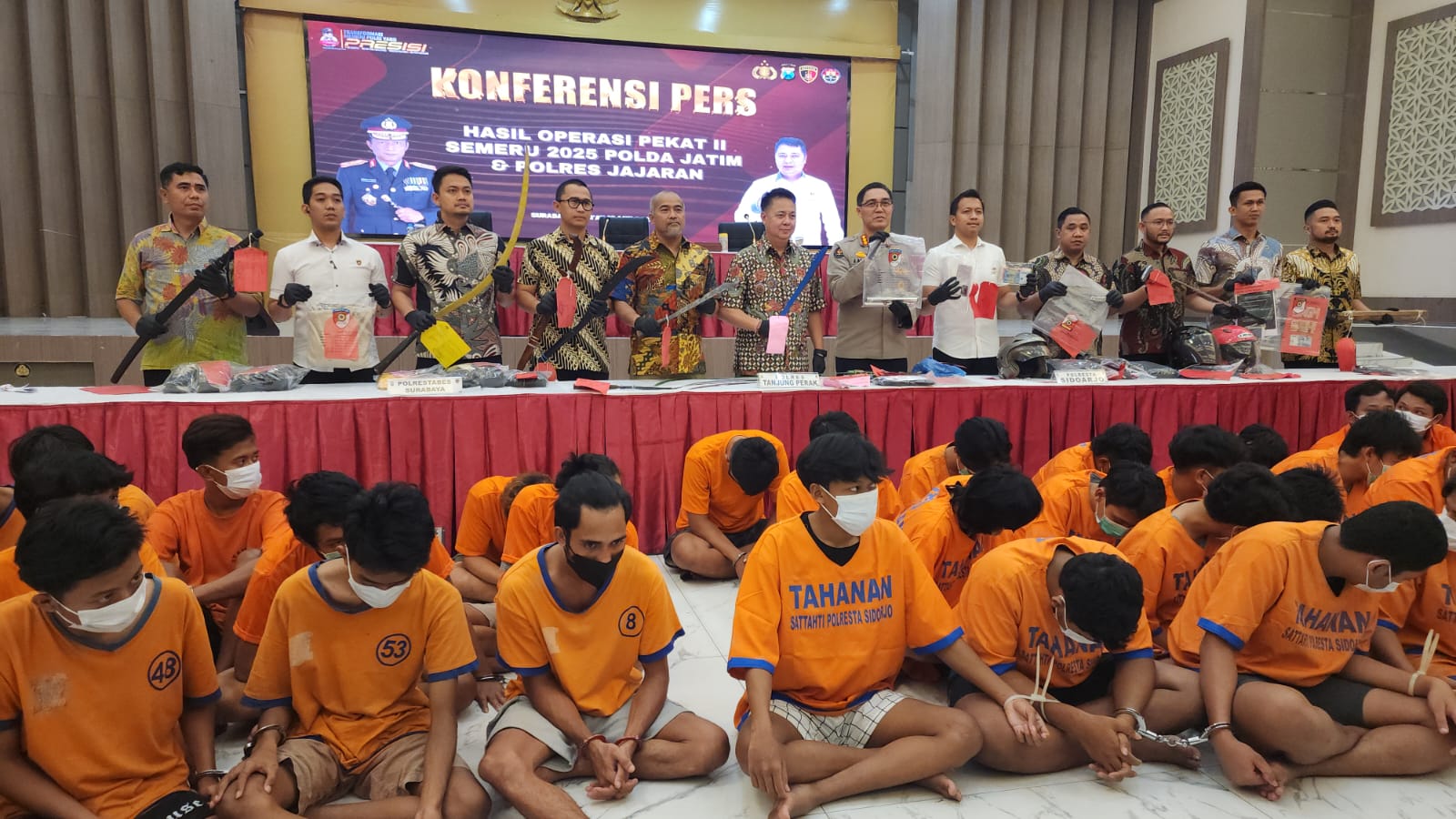 “Pelaksanaan penanggulangan aksi premanisme dilakukan oleh seluruh jajaran kepolisian. Menindaklanjuti perintah, Bapak Presiden Prabowo Subianto juga menindaklanjuti perintah Bapak Kapolri Jendral Polisi Listyo Sigit Prabowo, dalam mendukung program Asta Cita,” kata Kabid Humas Polda Jatim, Kombes Pol Jules Abraham Abast, saat konferensi pers di Gedung Mahameru, Mapolda Jatim, Jumat (16/5/2025) siang.