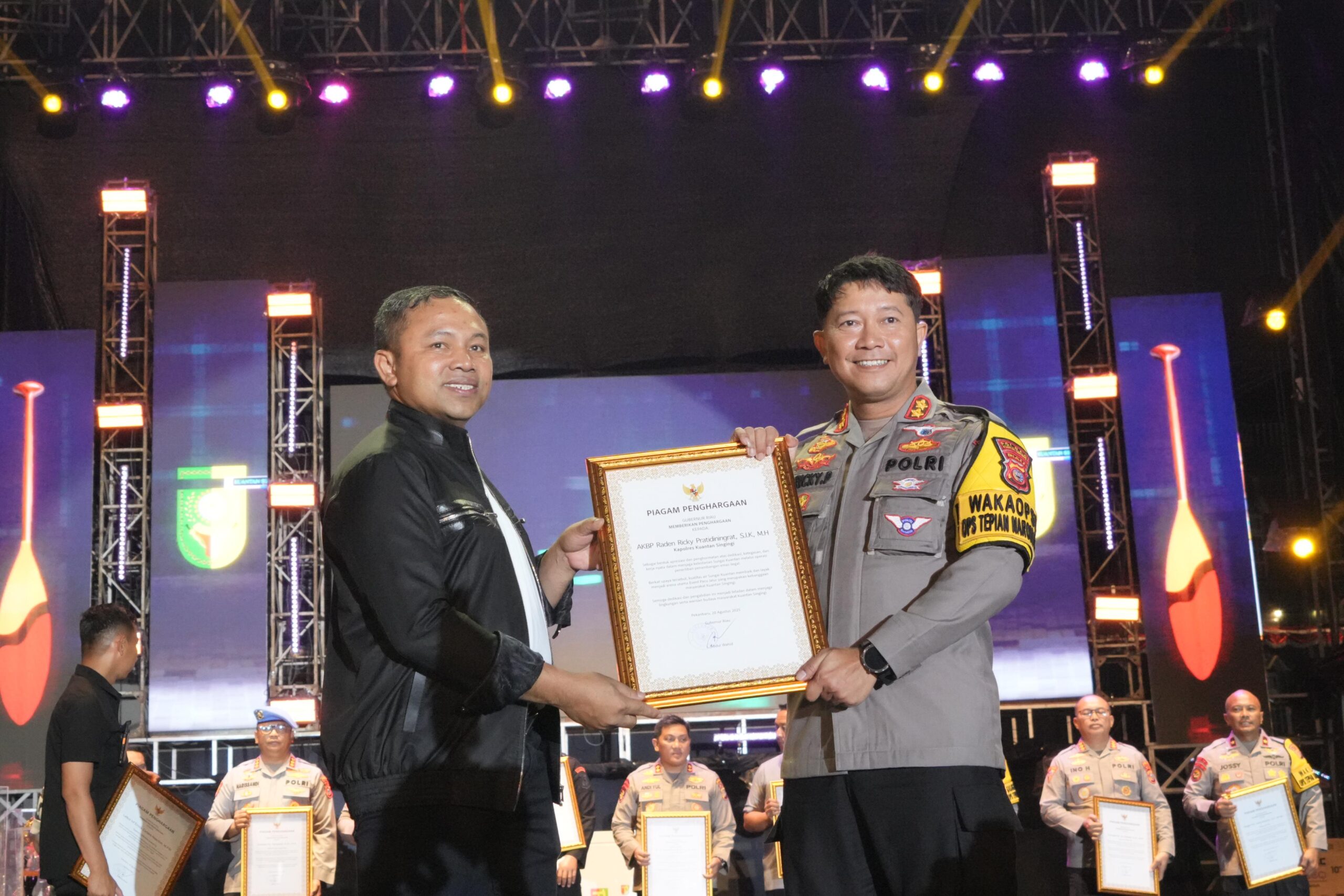 Gubri juga memberikan Piagam penghargaan kepada Waka Polda Riau, PJU Polda Riau dan pihak-pihak yang telah berkontribusi dan berjasa dalam mengembalikan air sungai Kuantan kembali bersih dan jernih.