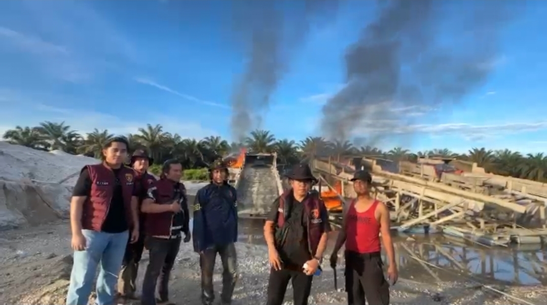 Setibanya di lokasi, petugas menemukan Tiga unit dompeng PETI yang telah ditinggalkan oleh para pekerja. Sebagai bentuk penindakan, personel langsung melakukan pengrusakan dan pembakaran terhadap peralatan tersebut di tempat, guna menghentikan aktivitas penambangan ilegal.