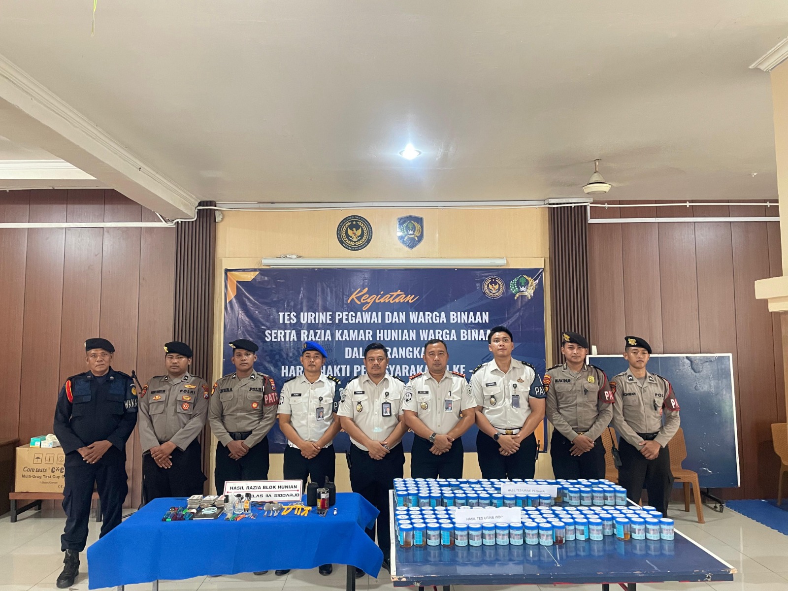 Sidoarjo, Breakingnewsnusantara.com — Lembaga Pemasyarakatan Kelas IIA Sidoarjo menggelar kegiatan tes urin bagi seluruh pegawai dan warga binaan yang dilaksanakan di aula kunjungan Lapas Sidoarjo. Kegiatan ini diikuti oleh seluruh petugas dan warga binaan sebagai bentuk komitmen bersama dalam menciptakan lingkungan pemasyarakatan yang bersih dari penyalahgunaan narkoba, serta turut dihadiri oleh aparat kepolisian guna memastikan pelaksanaan berjalan aman dan tertib, Senin (06/04/2026)